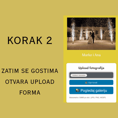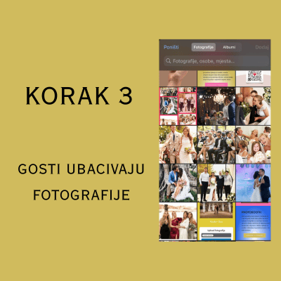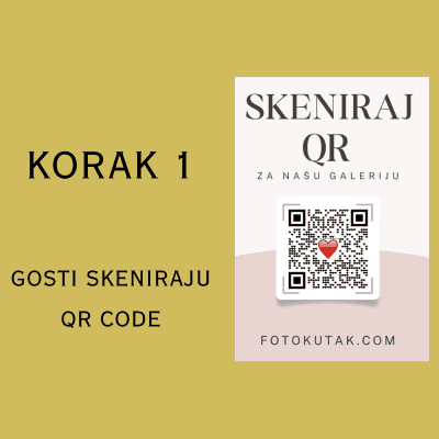 Uz naš QR kod album, gosti jednostavno skeniraju kod i ubace slike direktno u vaš digitalni svadbeni album – brzo, lako i bez aplikacija!